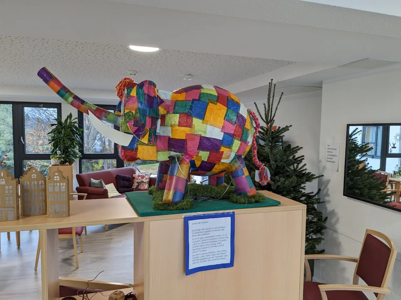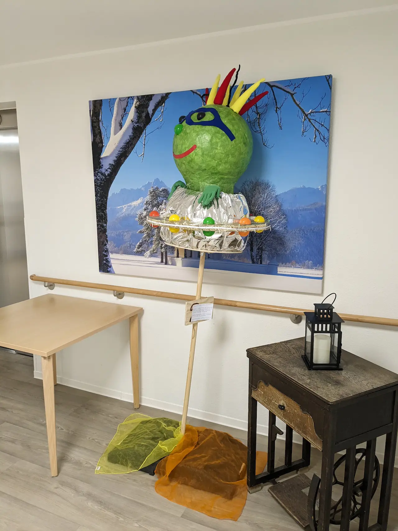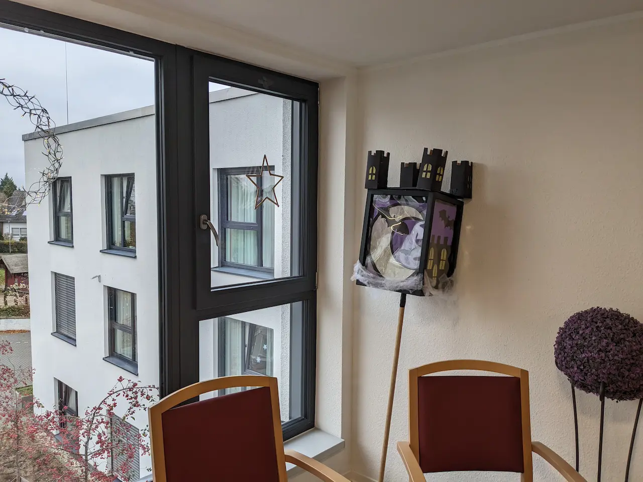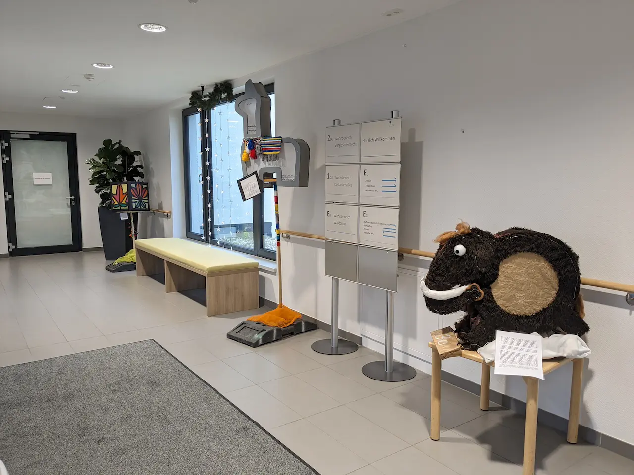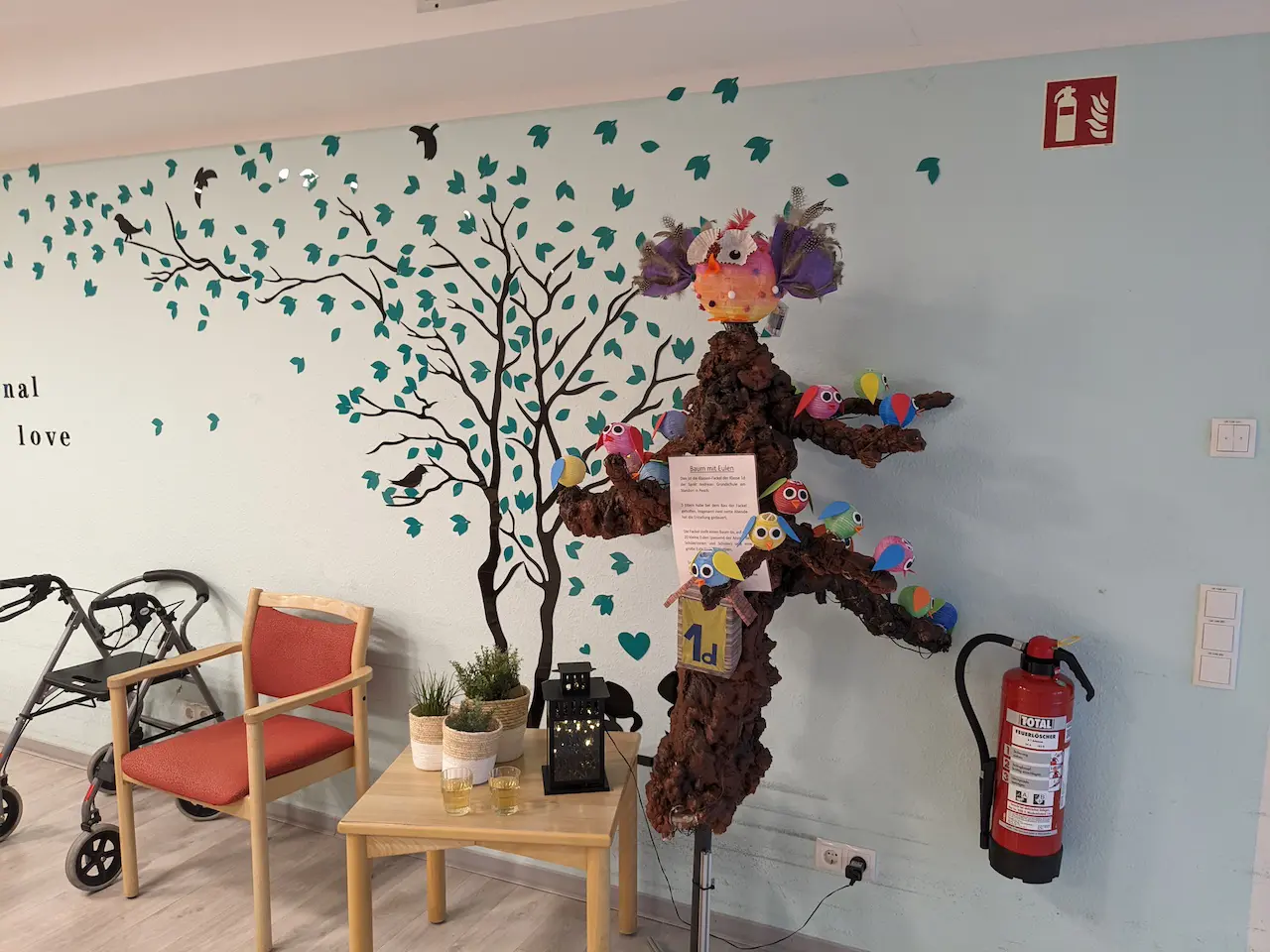Direkt im Eingangsbereich begrüßten die Laternen 4 Wochen lang die Bewohner/innen und Gäste. Alle haben die Aktion mit großer Freude wahrgenommen. Durch die  geschriebenen Texte zu der Umsetzung, dem Zeitaufwand und den beteiligten Eltern konnten sich die Bewohner/innen einen tollen Eindruck verschaffen.