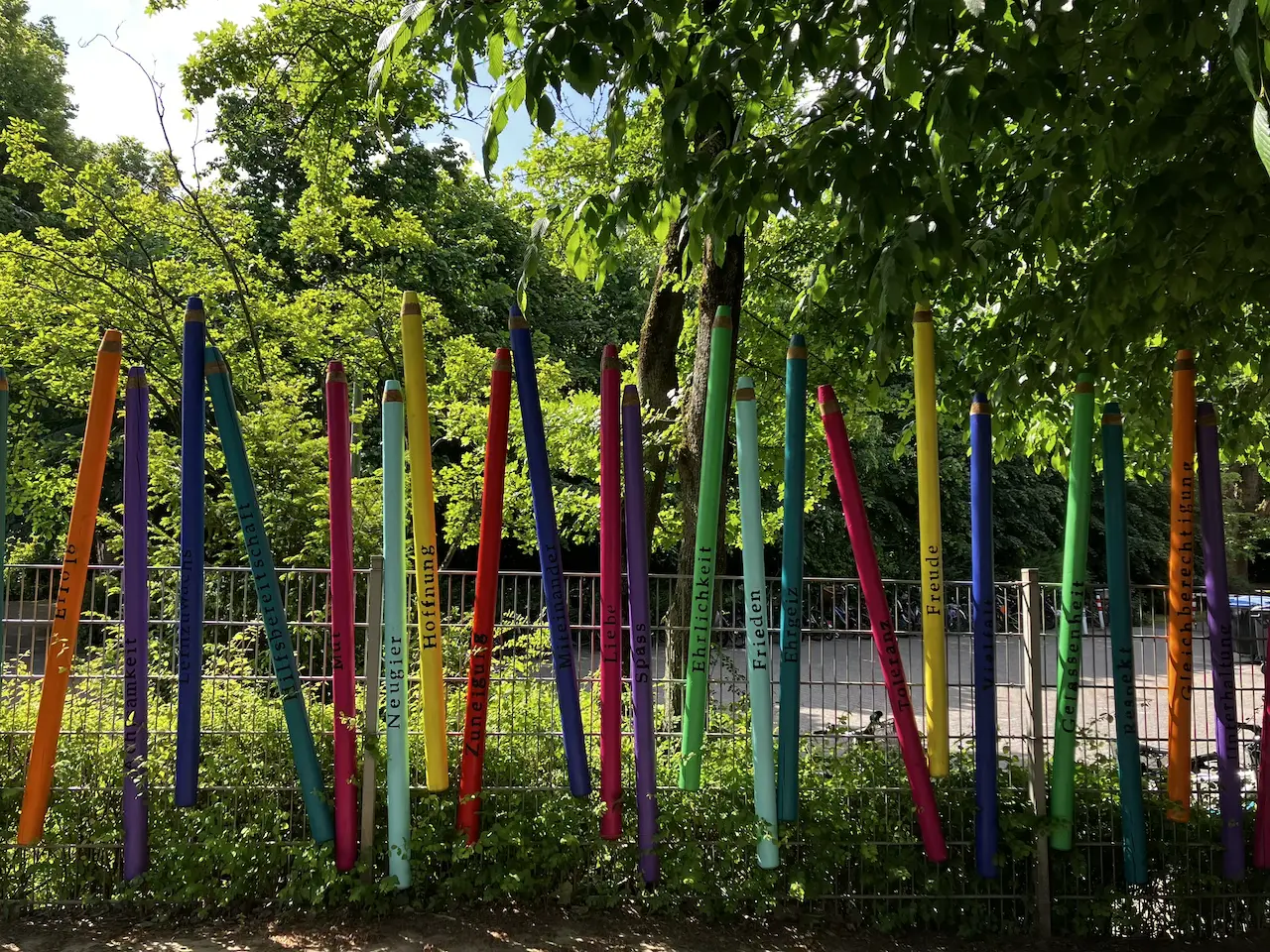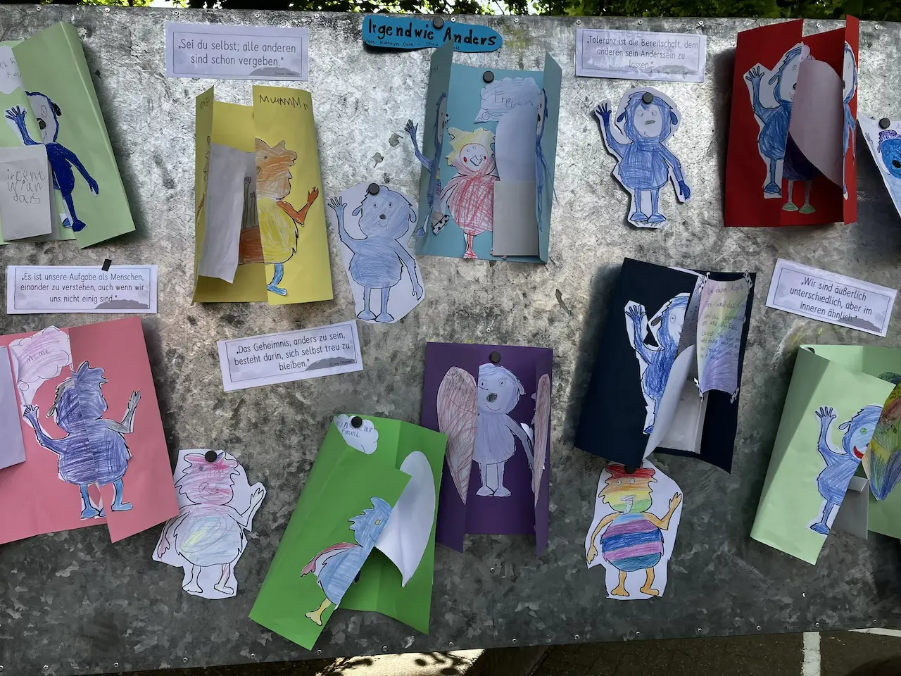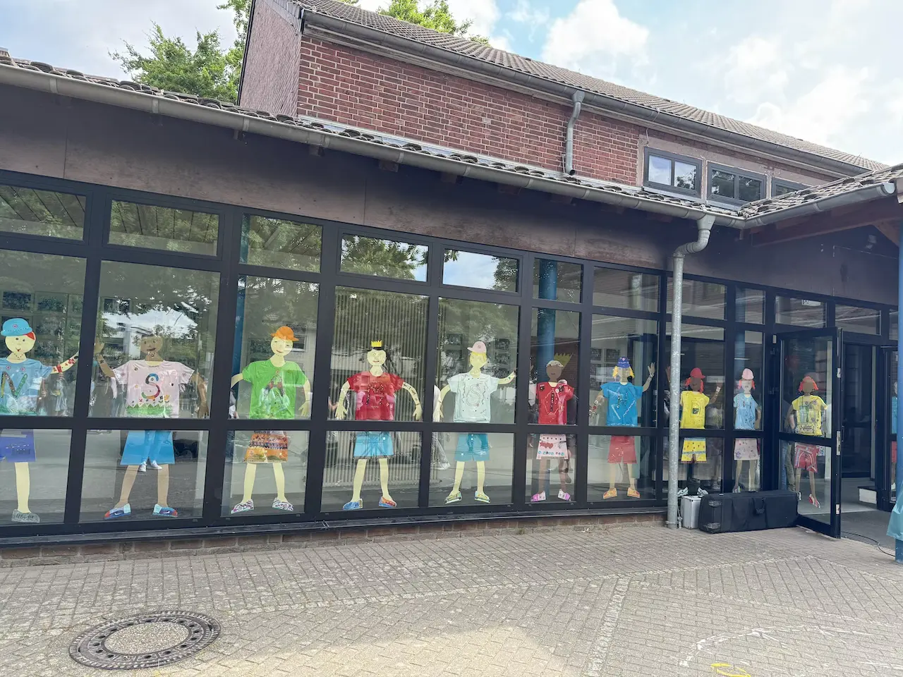 Schon beim Betreten des Schulhofs wurde klar: Hier passiert etwas Schönes. Es roch nach frisch gebackenen Waffeln, überall gab es etwas zu entdecken, und die Kinder waren mit Begeisterung bei der Sache. In kleinen Gruppen arbeiteten sie an ganz unterschiedlichen Projekten – kreativ, sportlich, sozial. Und das Ergebnis konnte sich wirklich sehen lassen: Der Schulhof wurde zur bunten Ausstellungsfläche mit Plakaten, Mitmachstationen und tollen Ideen. Besonders stolz sind wir auf die leuchtenden Zaunstifte, die nun unsere Schule schmücken und schon von Weitem zeigen: Hier halten wir zusammen.