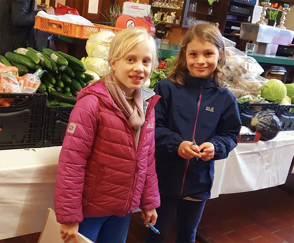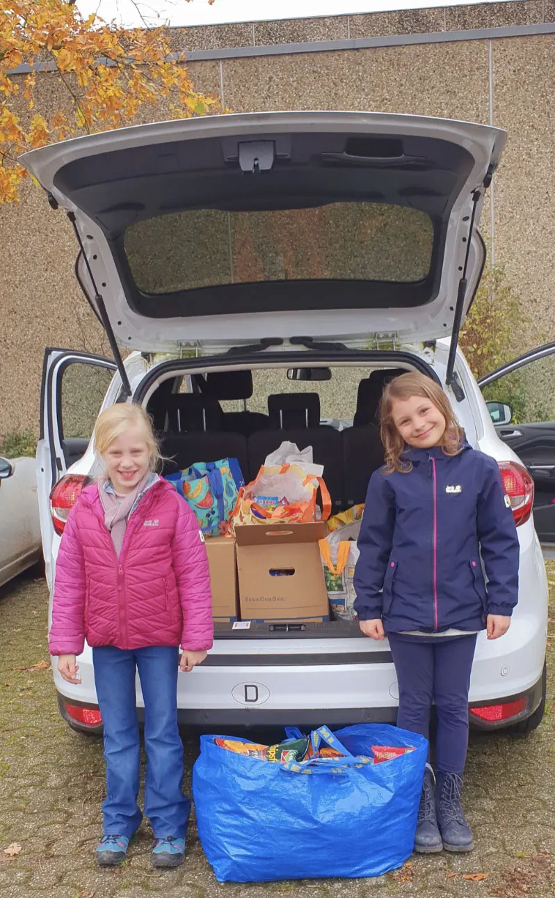 Am 21.11.2023 brachten Nele und Felicitas aus der Schülerzeitungs-AG zusammen mit Frau Päßler die gesammelten Süßigkeiten von St. Martin zur “Tafel”.